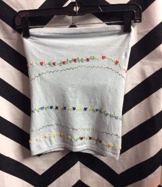 Top, tube style, knit, floral embroidery, baby blue/multi, size XS