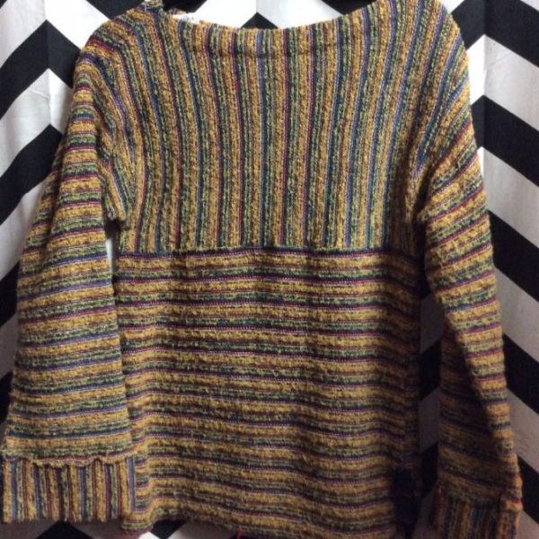 1970’S KNITTED SWEATER W/VERTICAL & HORIZONTAL STRIPES