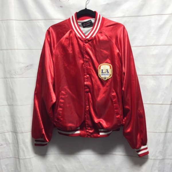 LA ANHEUSER BUSCH BEER SATIN BASEBALL BOMBER JACKET – AS IS