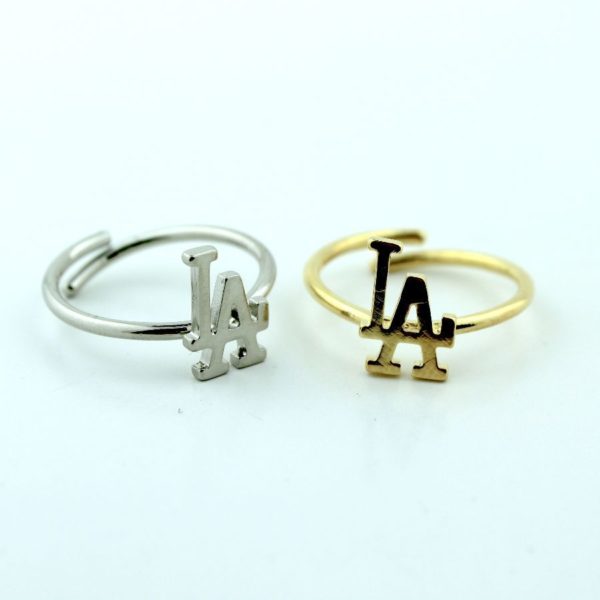 RING, LETTERS LA, METAL, NEW SHANK, SILVER, SIZE ADJUSTABLE