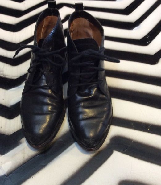 1950S-60S POLISHED LEATHER DRESS SHOES W/ LACES SMALL PLATFORM HEEL