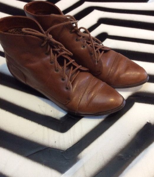 1950S-60S POLISHED LEATHER DRESS SHOES W/ LACES SMALL PLATFORM HEEL