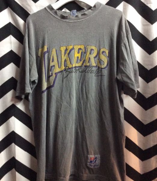 T-shirt, Lakers Basketball, screen printed design full front, super thin, gray, size L has holes