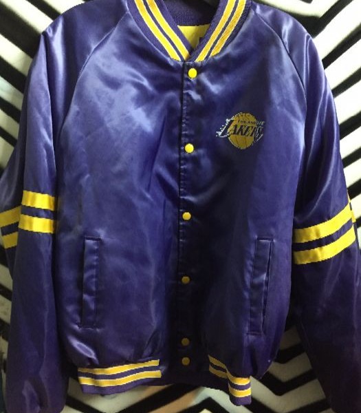 LAKERS SATIN BASEBALL STYLE JACKET W/STRIPES