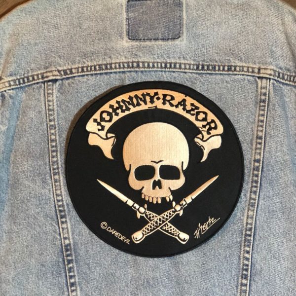 JOHNNY RAZOR SKULL & KNIVES BACK PATCH – LARGE