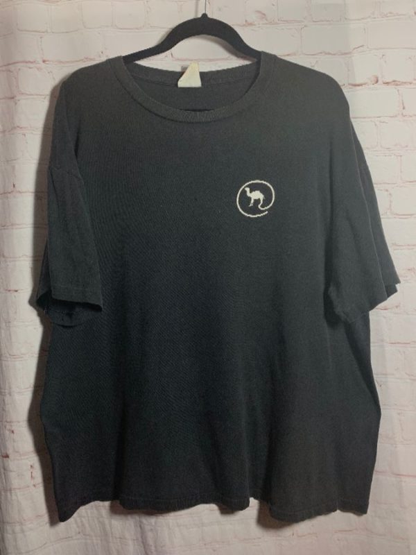 Caribbean Dream T-shirt, cotton, Camel Cigarettes, screen printed silhouette logo front left chest & full back design with “where it’s @”, black/light gray, size XL