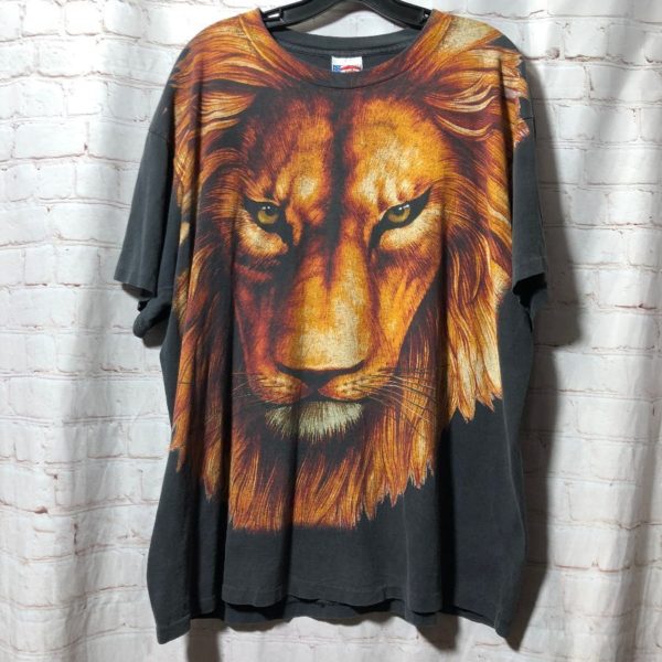 LARGE LION FACE ALLOVER FRONT DESIGN PRINT T-SHIRT