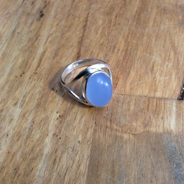 Ring, large, oval, pastel colored semi-precious stone, sterling silver mounting, silver/pastel blue gray, size 8