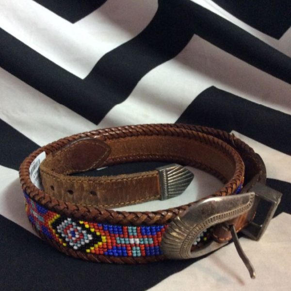 LEATHER BELT FULLY BEADED W/NATIVE AMERICAN DESIGN