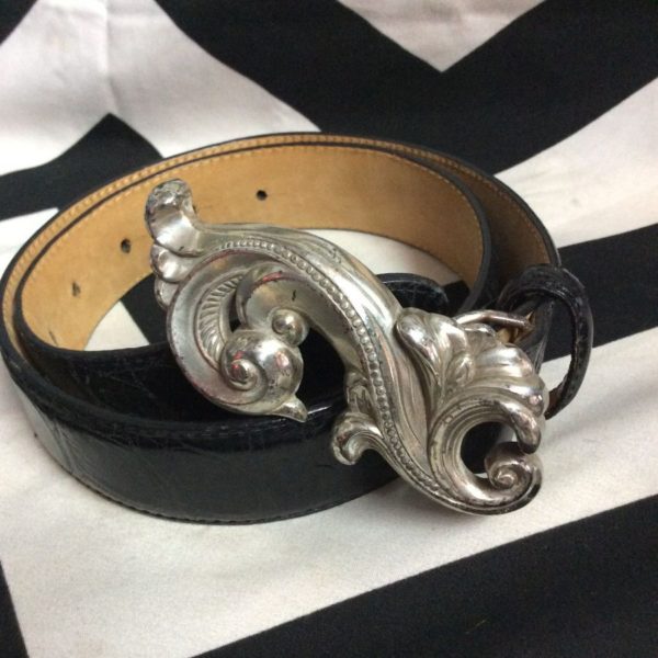 SUPER THIN LEATHER BELT W/ SILVER DETAILED HARDWARE BUCKLE