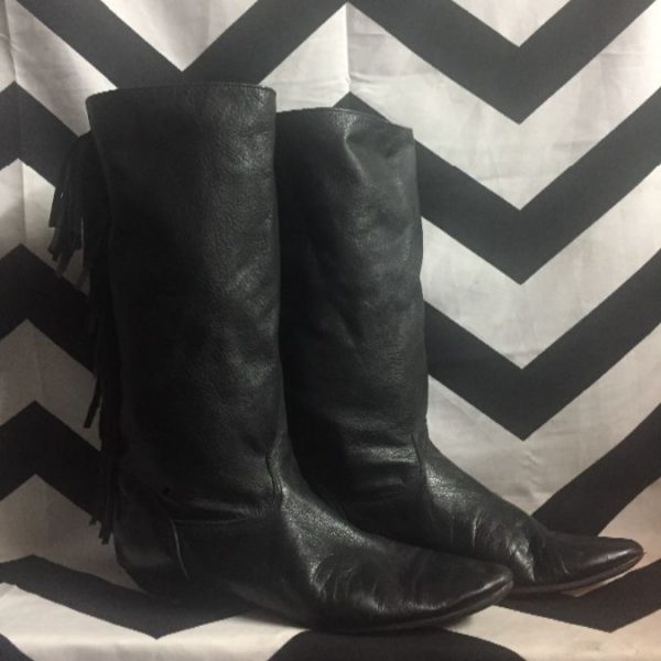 LEATHER BOOTS W/ FRINGE DOWN BACK & POINTED TOE