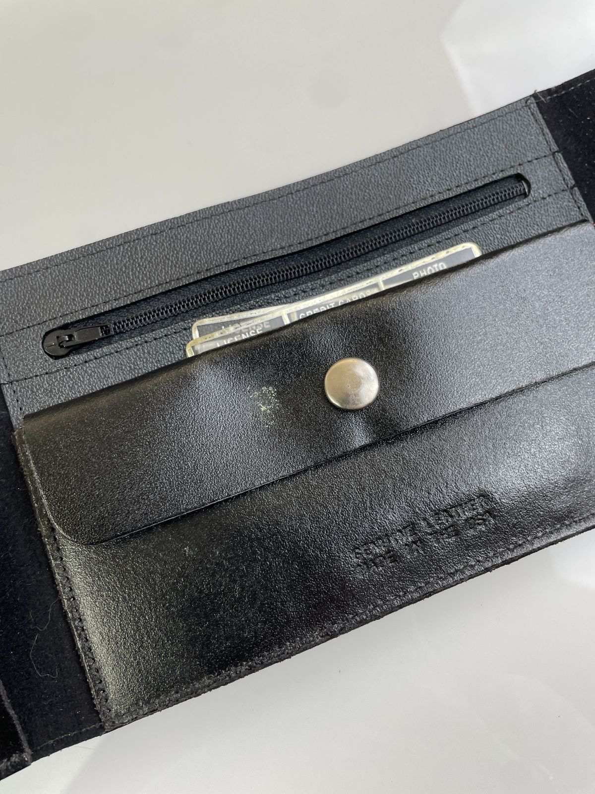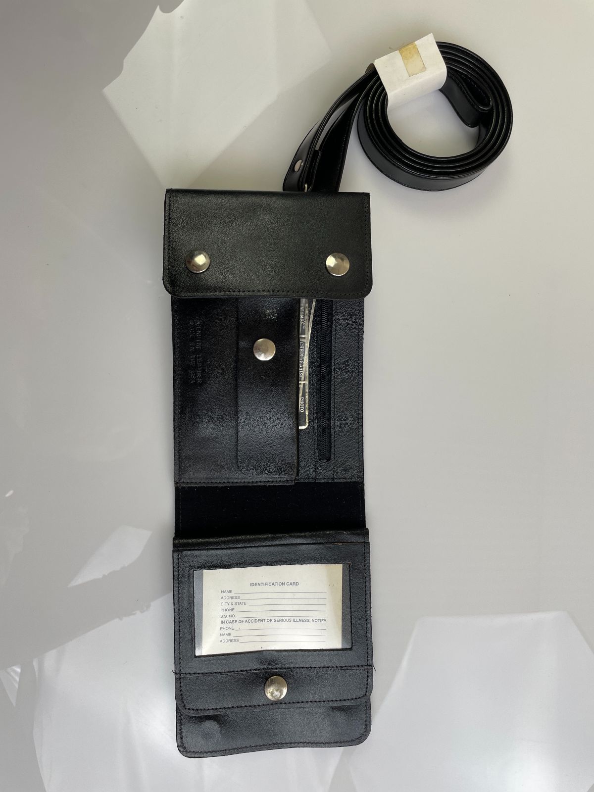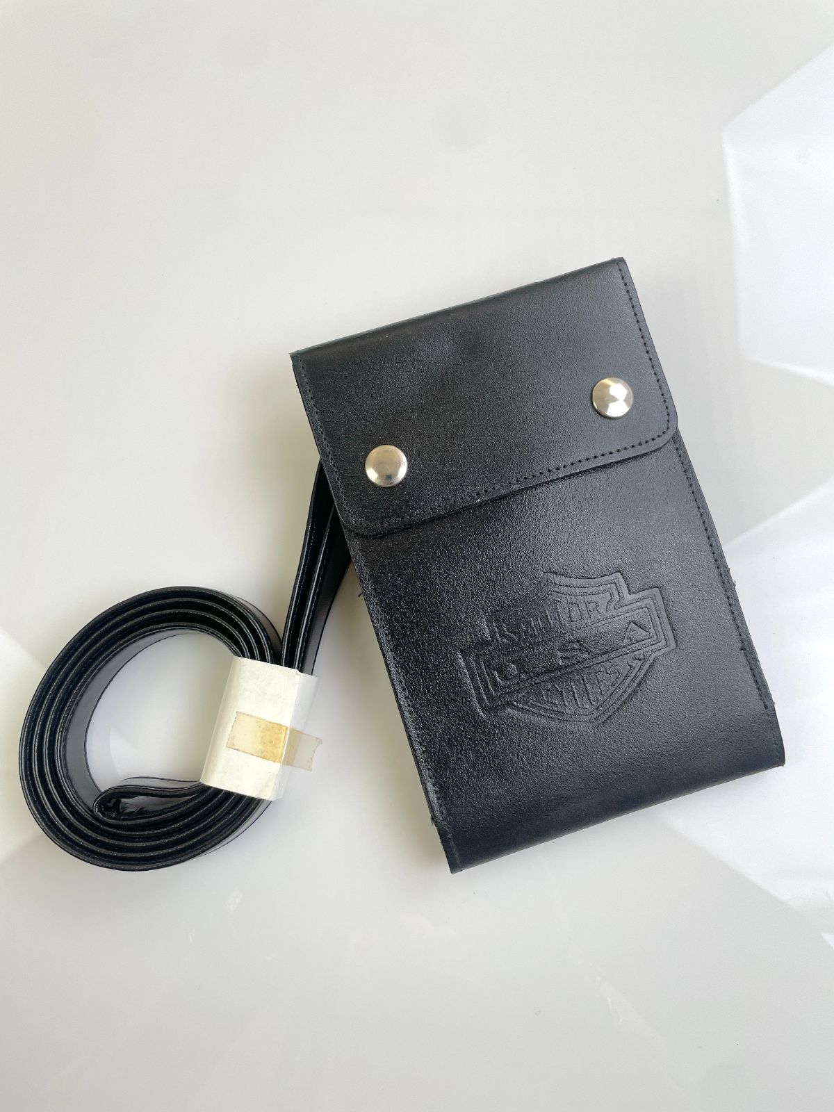LEATHER EMBOSSED LOGO LANYARD WALLET W/ SNAP CLOSURE