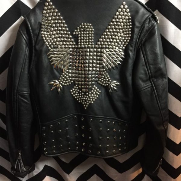 LEATHER MOTORCYCLE JACKET W/METAL STUDS & EAGLE STUDDED BACK