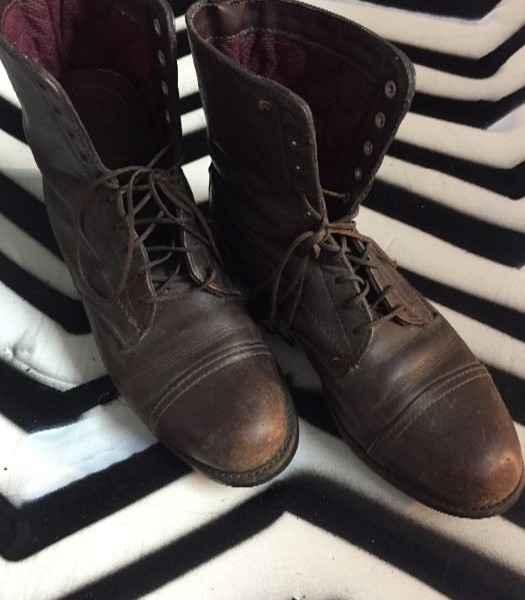 LEATHER LACE-UP BOOTS W/QUILTED LINING