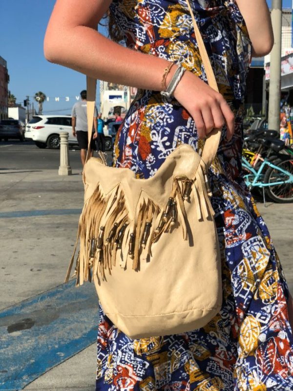 LEATHER PURSE W/ FRINGE & BEADS ZIP OPENING