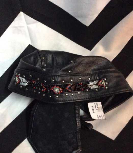 MOTORCYCLE HAT – LEATHER – W/STUDS & BEADED DESIGN