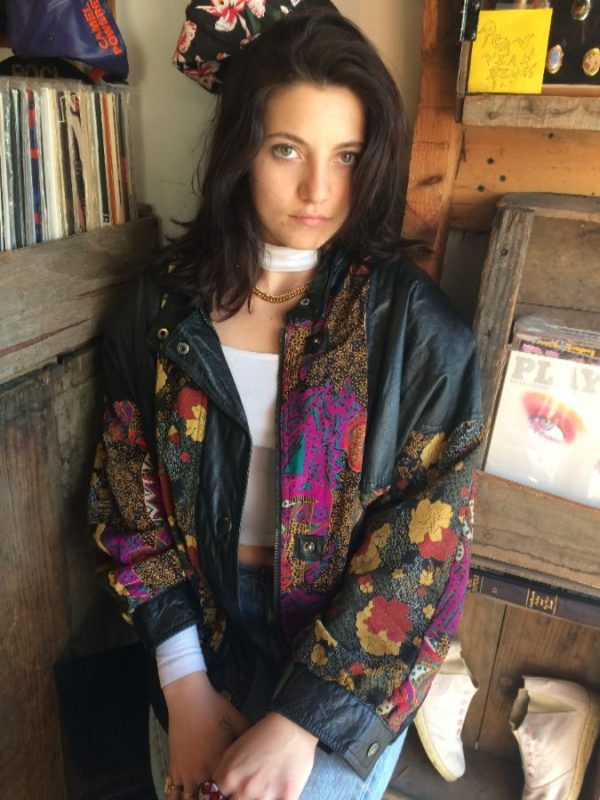 LEATHER JACKET SATIN FLORAL PRINT PANELS