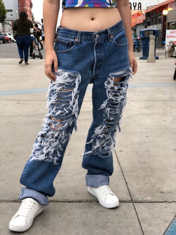 LEVIS DENIM JEANS 501 FULLY RIPPED; HEAVILY FRAYED