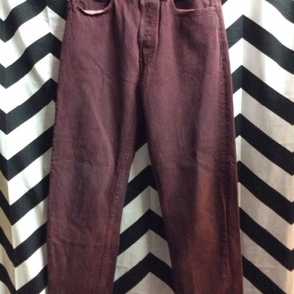 Levis denim jeans, 501, red tab, maroon, size 32W 34L