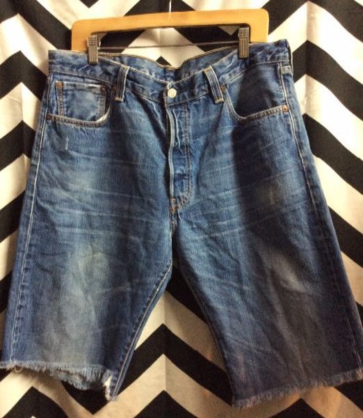 LEVIS DENIM SHORTS – CUTOFF – LONG CUT – 501 – RED TAB – ACID WASHED