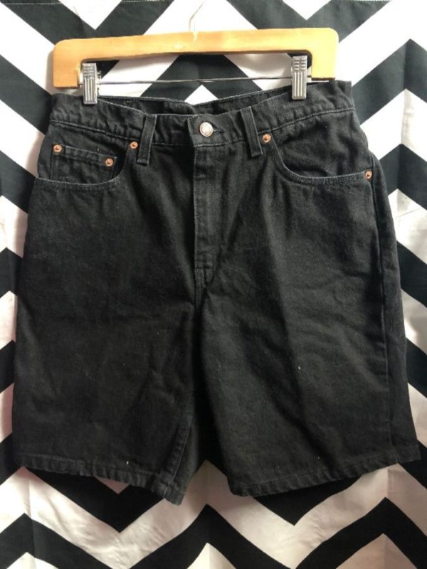 Levis denim shorts, 506, hemmed, red tab, regular fit, black, 32″W