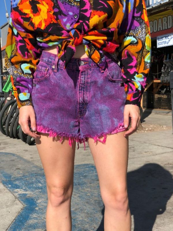 LEVIS DENIM 550 TIE-DYED FRAYED SHORTS W/ ZIPPER & STUDS