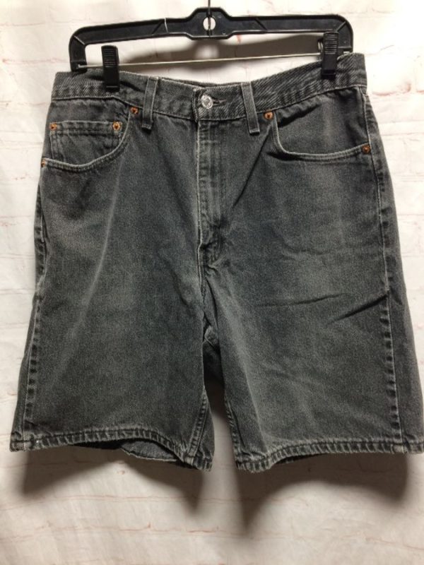 Levis denim shorts, hemmed, longer cut, 550, red tag, relaxed-fit, black, size 34W