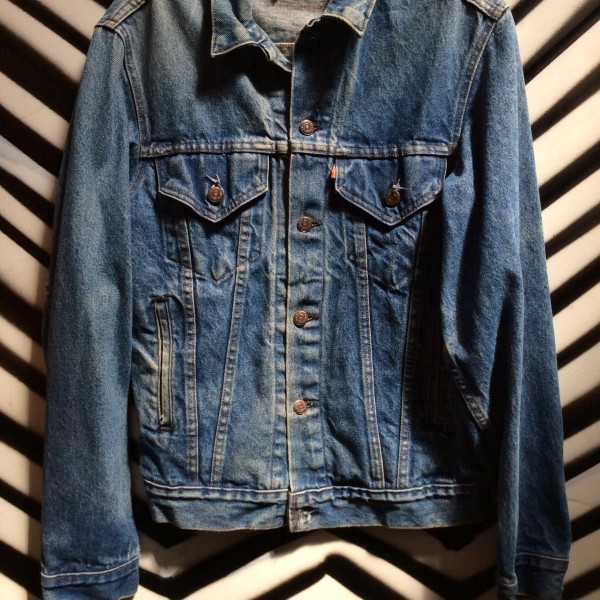 *AS-IS* DISTRESSED & BLEACHED LEVIS DENIM JACKET ADDED BACK PATCH