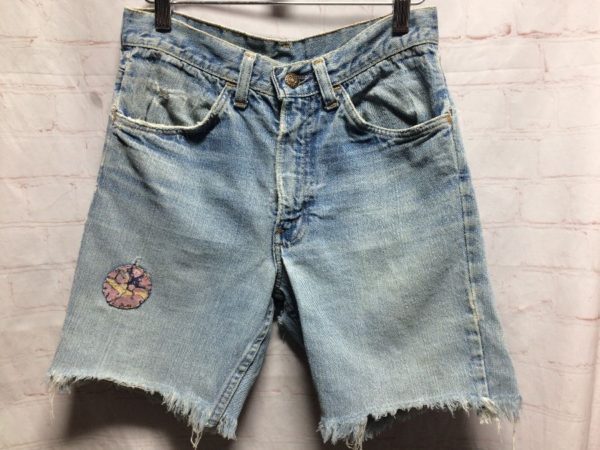 SIZE 28 LEVIS DENIM CUT OFF SHORTS / SHANTS / JORTS WITH PEACE PATCH – AS IS