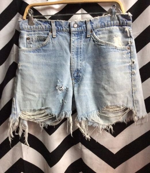 LEVIS DENIM SHORTS – CUTOFF – LONGER CUT – LIGHT WASH – DISTRESSED