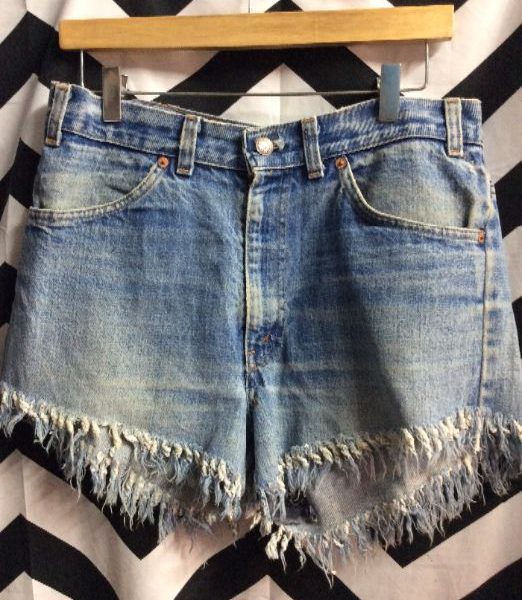 LEVIS DENIM SHORTS – CUTOFF – ORANGE TAB – KNOTTED FRAY – ACID WASH