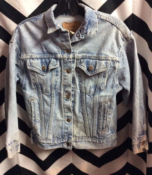 Levis denim jacket, button-up, acid washed, light blue, size S small fit