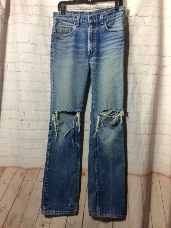 COMPLETELY RIPPED BOTTOM AREA, KNEES FULLY BLOWN-OUT LOOKS RAD |
