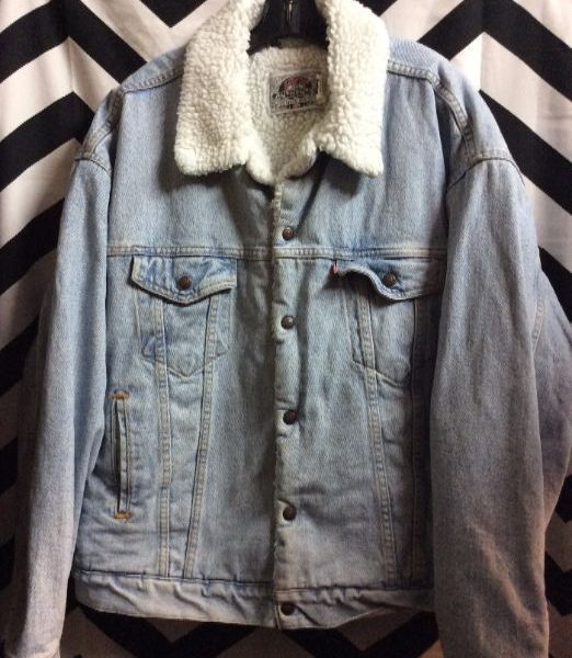 Levis denim jacket, button-up, Sherpa lining, acid washed, light blue, size XL