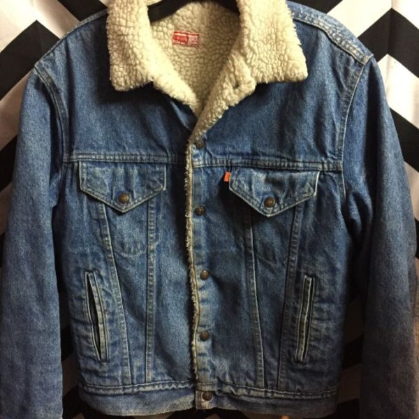 LEVIS DENIM JACKET ORANGE TAB SHERPA LINED