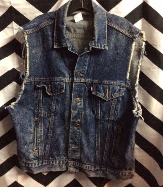 Levis denim vest, red tab, cut-off sleeves, button-up, lightly washed, dark blue, size L