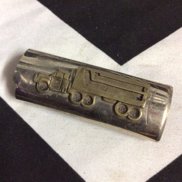 Lighter case, semi truck design, diamond swirl engraving, bronze/silver