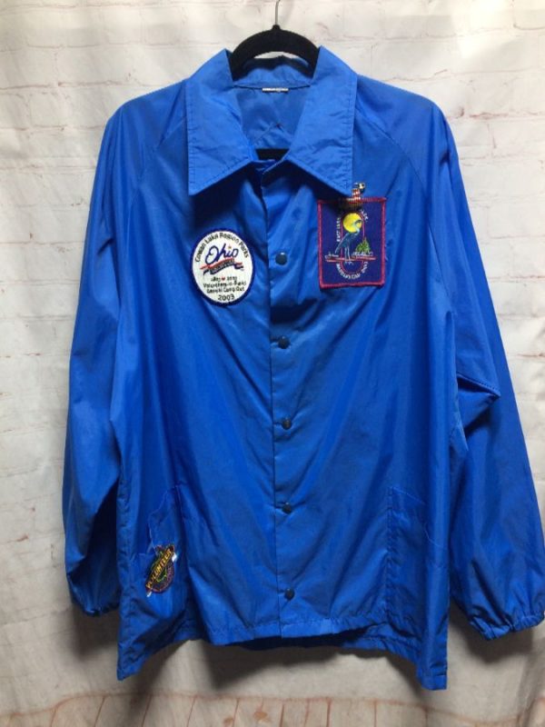 LIGHTWEIGHT WINDBREAKER JACKET WITH ASSORTED PATCHES