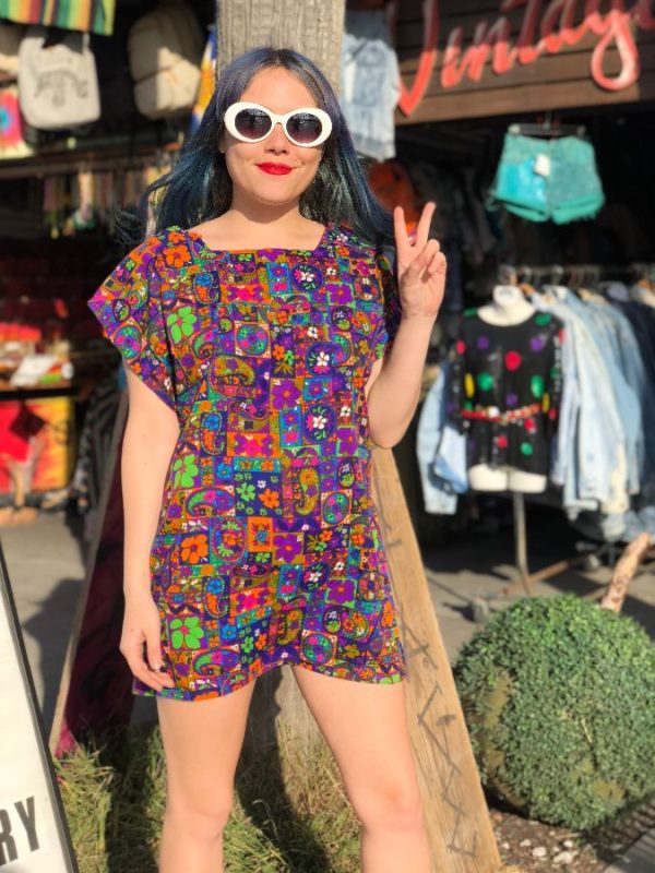 1960’S DRESS/TUNIC – MINI – FLORAL PATCHWORK LOOKING PRINT