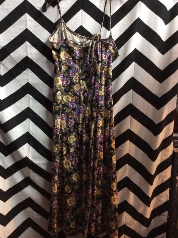 1990’S DRESS – SPAGHETTI STRAPS – MAXI LENGTH – FLORAL & LEAF PRINT