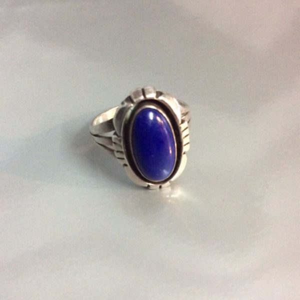 RING – LAPIS STONE – STERLING SILVER SETTING – SIGNED D