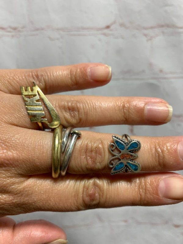 BUTTERFLY RING W/ TURQUOISE & CORAL INLAY IN STERLING SILVER SETTING