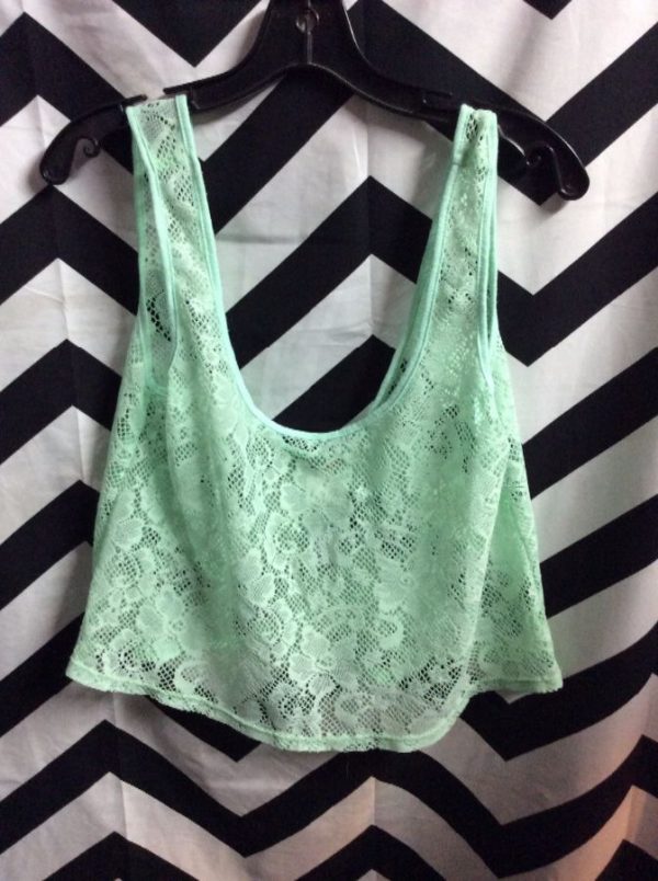 TANK TOP, CROPPED, LACE, AQUA, SIZE L