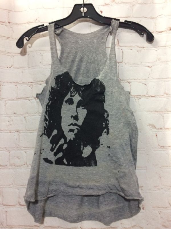 CROPPED & CUT-AWAY RACER BACK TANK TOP W/ JIM MORRISON PRINT