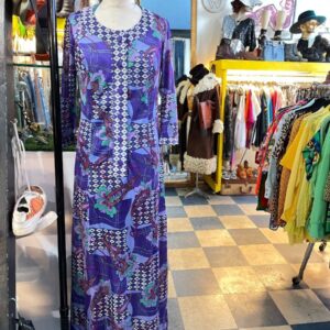 AS IS 1960S BUTTON FRONT 3/4 SLEEVE LOOSE FIT PRINTED MAXI DRESS