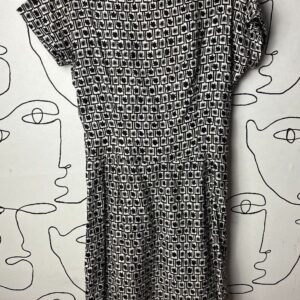 1950S BLACK AND WHITE ATOMIC PRINT CAP SLEEVE DRESS