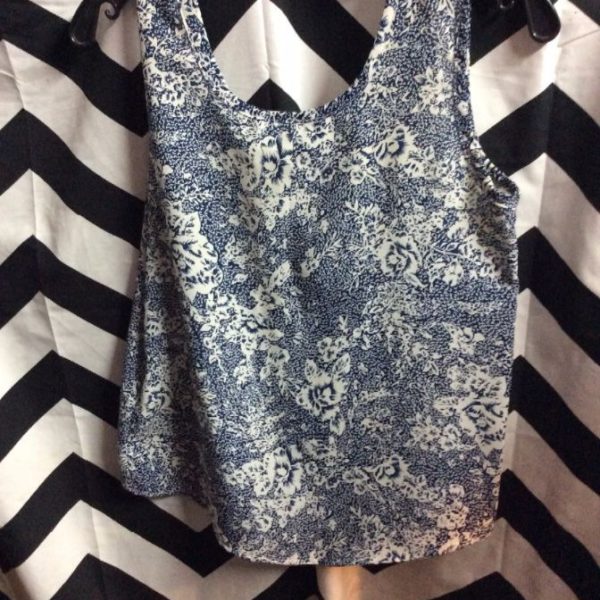 TANK TOP, FLORAL PRINT DESIGN, BLUE/WHITE