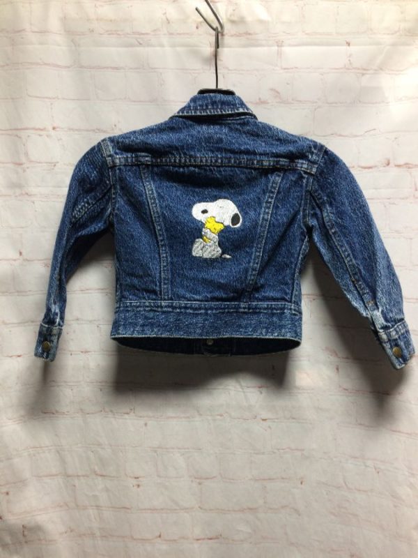 LITTLE KIDS DENIM JACKET W/ EMBROIDERED SNOOPY & WOODSTOCK