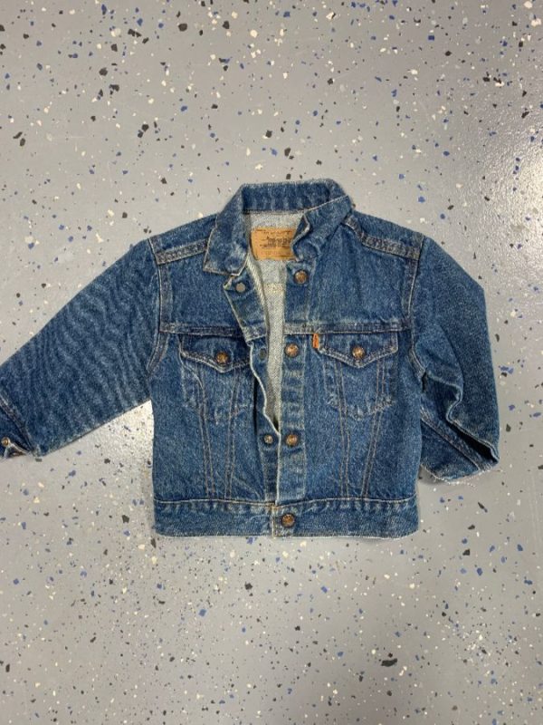 KIDS VINTAGE LEVIS DENIM JACKET W/ ORANGE TAB & DARKER ACID WASH