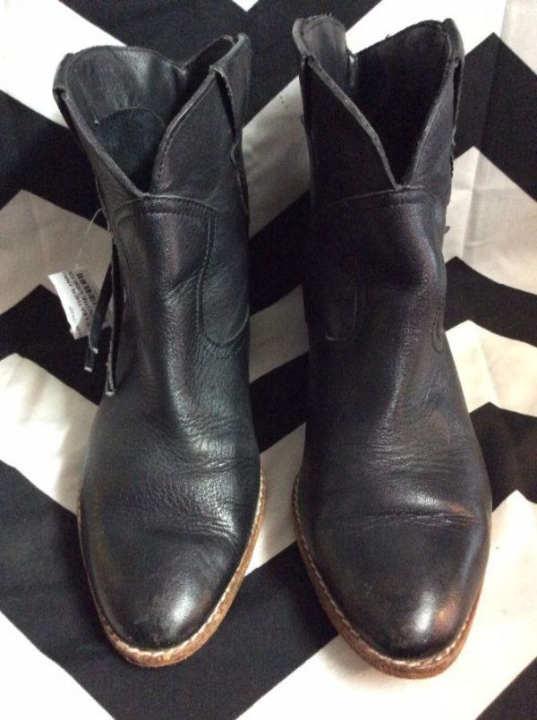 LEATHER ANKLE HIGH COWBOY BOOT/BOOTIE W/SIDE CONCHOS & LEATHER LACE DETAIL